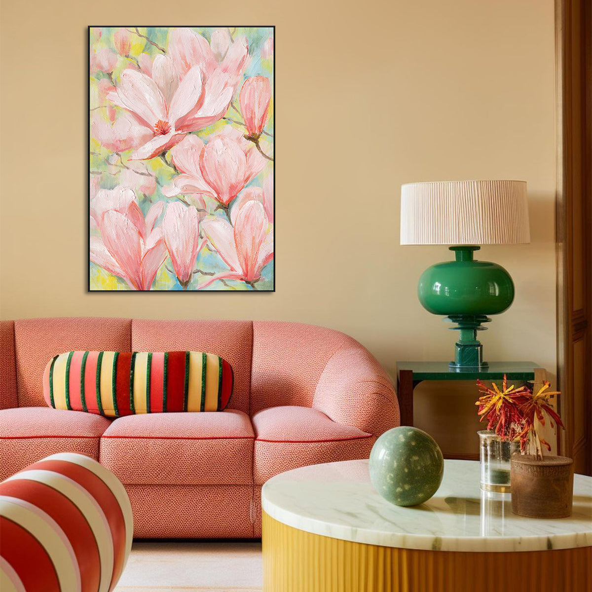 Soft blush magnolia petals bloom on canvas, exuding romantic charm and spring vitality, infusing warmth into any space.