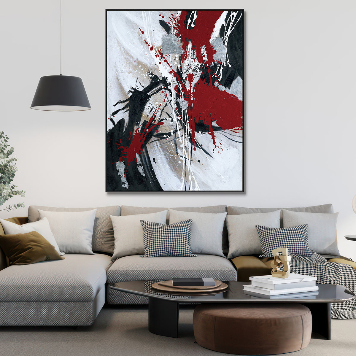 Perfect for modern interiors, this abstract expressionist wall art adds dramatic flair and contemporary sophistication with its bold color contrast and layered texture.