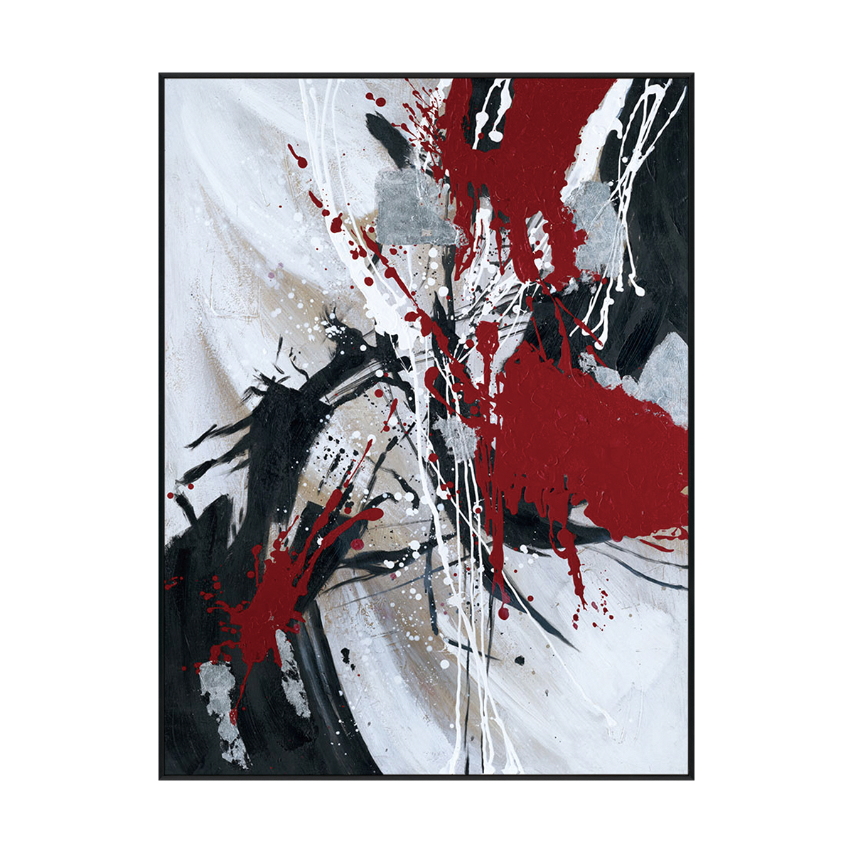 Crimson Motion – Red and Black Abstract Expression Painting” captures the raw intensity of motion and emotion through bold splashes of red, black, and white. The dynamic composition evokes a sense of passion, chaos, and creative freedom — every brushstroke revealing the artist’s expressive rhythm.