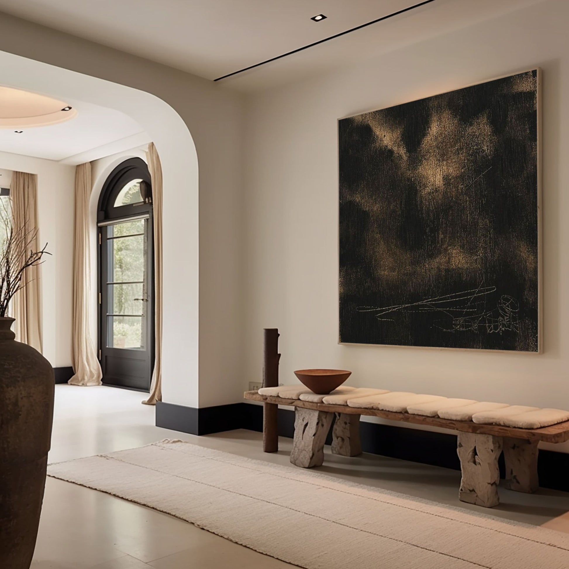 Expressed through Abstract Black Gold Painting, this piece balances shadow and warmth, while its tactile surface embodies the calm intensity of Minimalist Textured Art.
