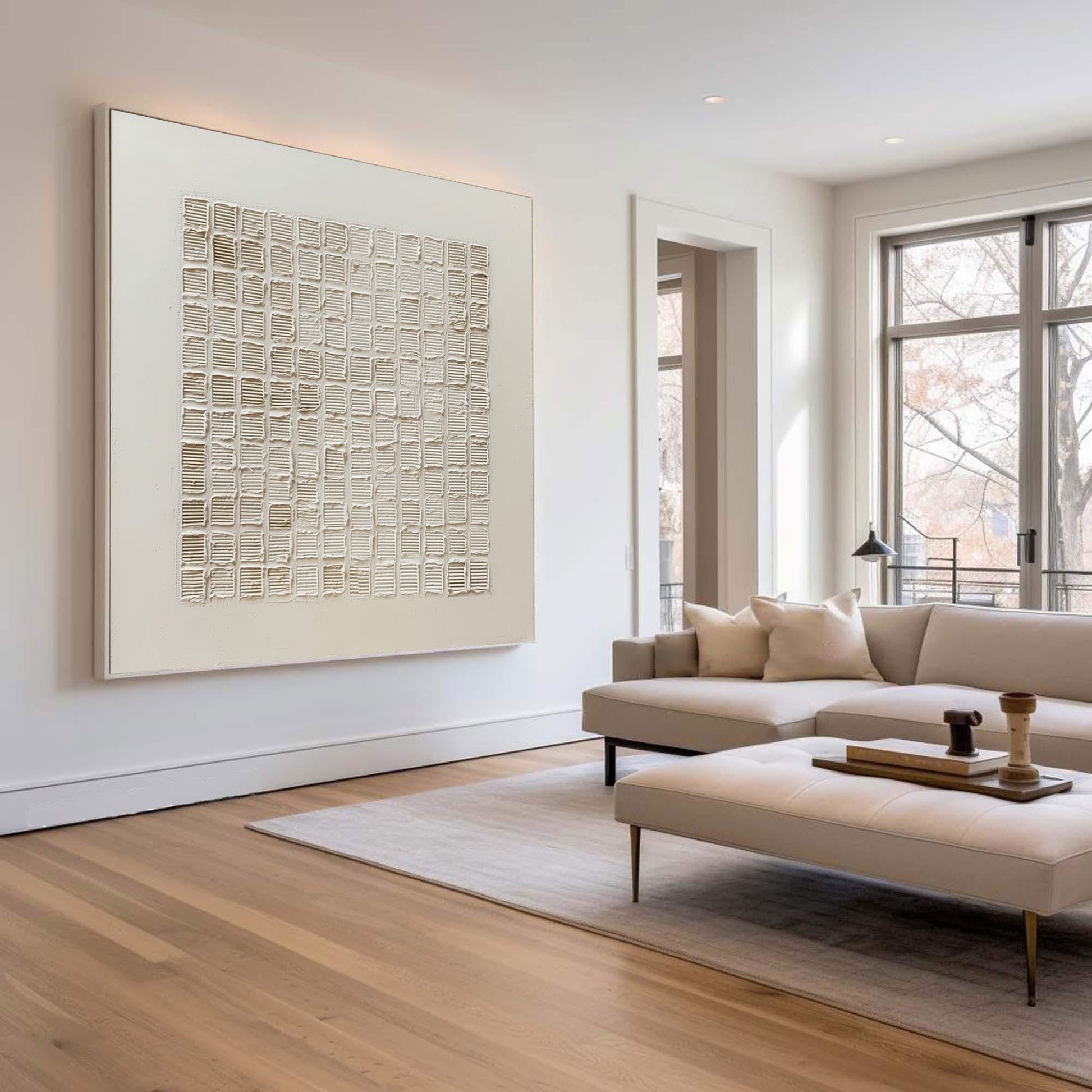 As a piece of Minimal Grid Texture Art, it balances structure with handcrafted imperfection. The restrained palette and tactile relief also define it as White Textured Abstract Painting, making it an elegant choice for modern minimalist, wabi-sabi, and refined interior spaces.