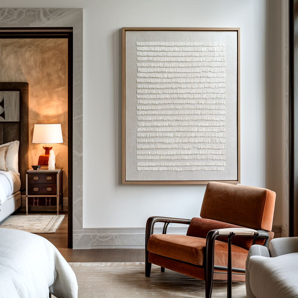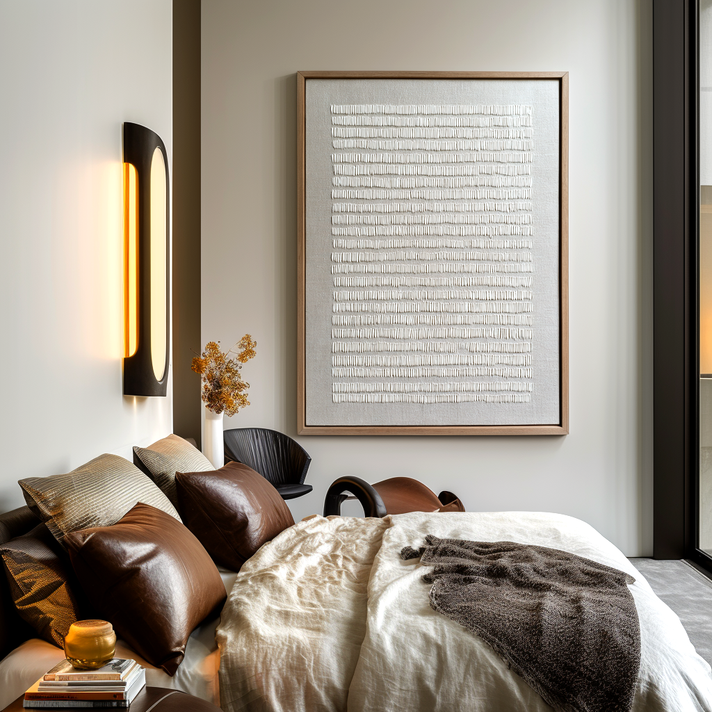 Linear Harmony celebrates simplicity and rhythm through a meticulous arrangement of raised lines across a neutral canvas. This Minimalist Textured Abstract Painting combines handcrafted precision and serene composition, evoking balance and calm in any interior. Subtle shadows formed by the relief texture create depth and sophistication—perfect for contemporary, Japandi, or Wabi-Sabi-inspired spaces.