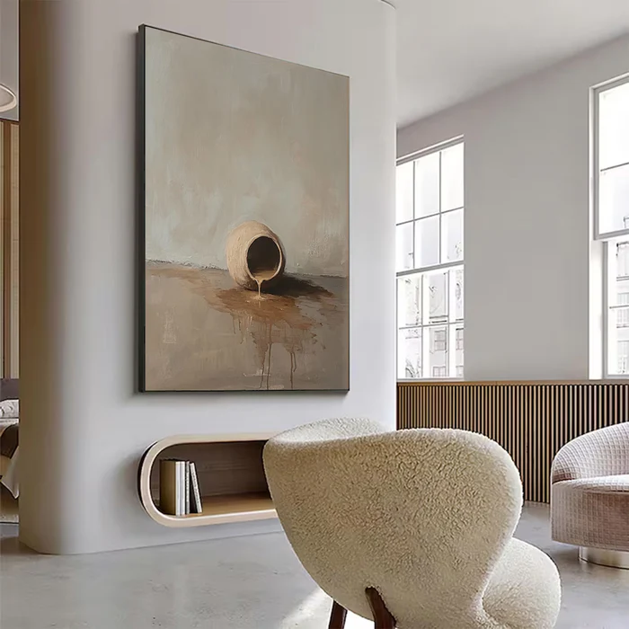 This minimalist pottery wall art resonates with the wabi-sabi aesthetic, celebrating tranquility and natural beauty in imperfection. Ideal for neutral or modern interiors, it adds an earthy elegance and poetic calm to any space.