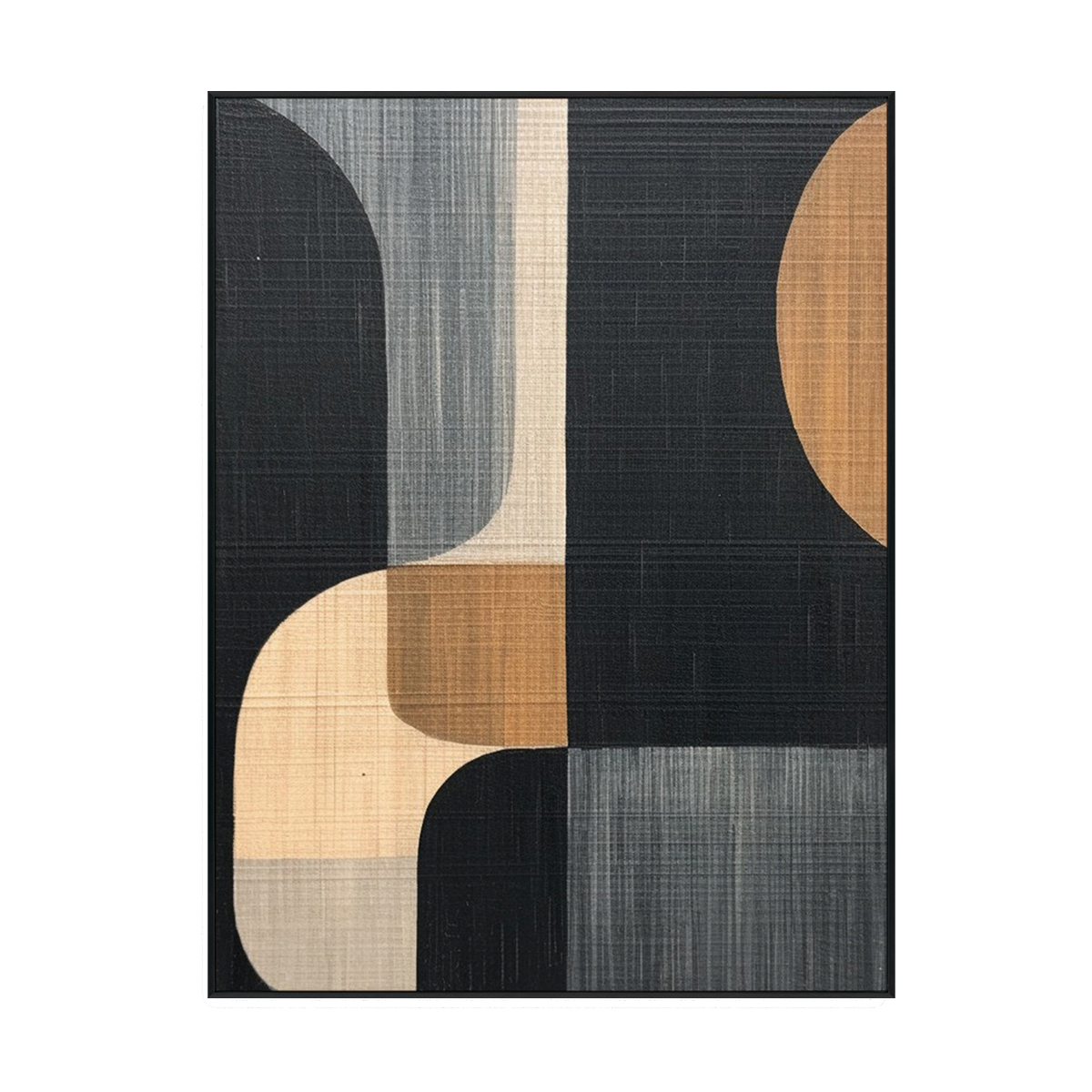 This abstract geometric painting features a masterful composition of curved and angular forms in warm brown, ivory beige, charcoal gray, and deep black. The interplay of color blocks creates a visual rhythm that feels both modern and timeless, expressing the beauty of balance and proportion. Perfect for minimalist interiors, modern living rooms, or creative office spaces, this piece embodies refined simplicity and architectural elegance.