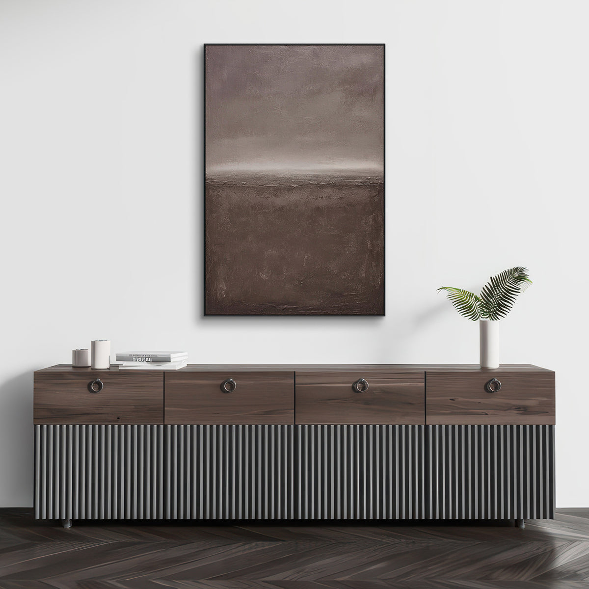 “Silent Horizon” embodies stillness and depth through refined minimalist abstraction. The painting layers soft gradients of earthy taupe and muted gray, merging sky and ground into a tranquil continuum. With a delicate textured surface, it evokes the calm of distant plains after dusk — a space between presence and absence. Perfect for modern interiors, this minimalist wall art adds quiet sophistication and balance, making it ideal for spaces seeking serenity and timeless style.