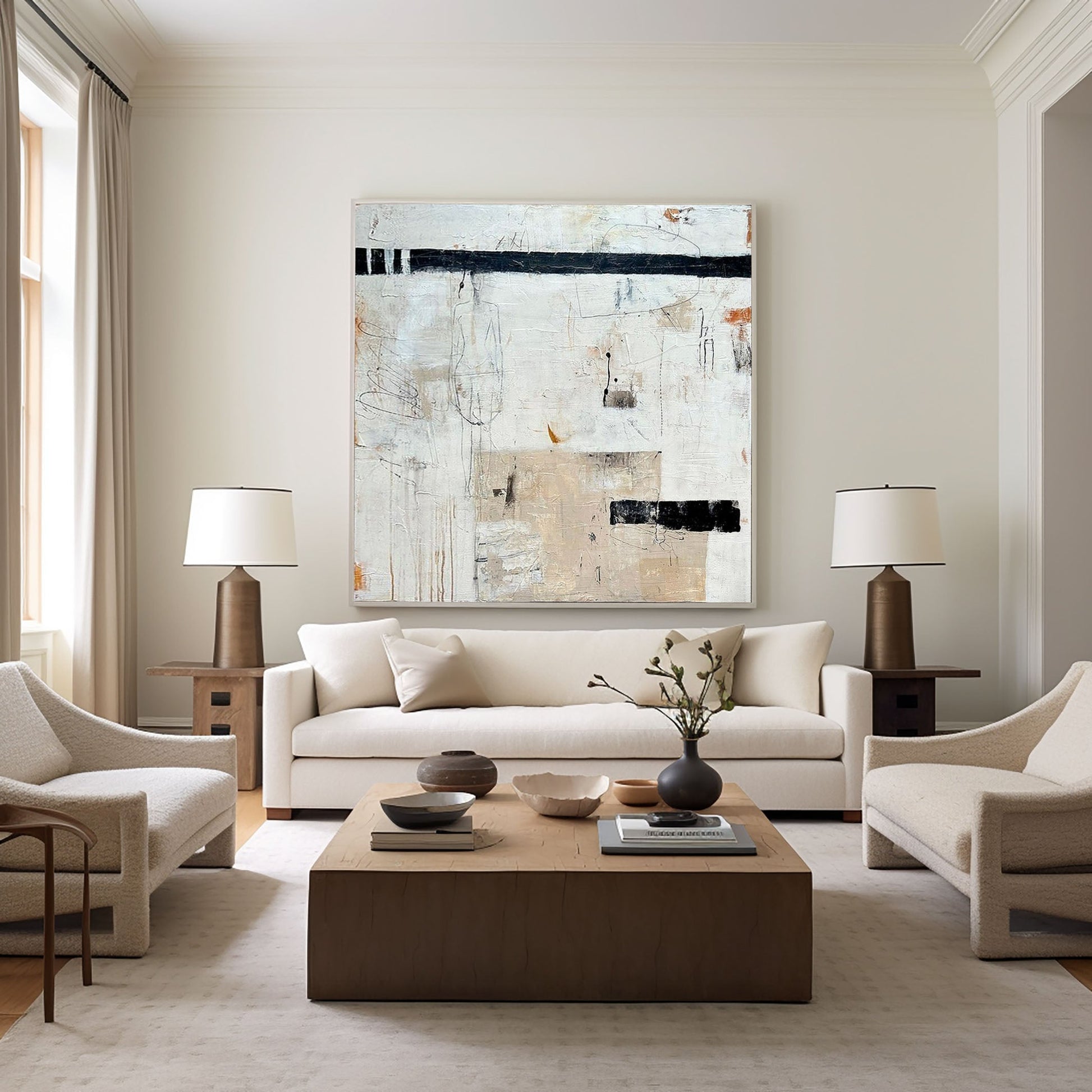 Calm, modern, and contemplative, this Silent Horizon Neutral Abstract Painting is well suited for minimalist, wabi-sabi, or refined contemporary interiors. Displayed in a living room, study, or curated workspace, it brings structure and emotional stillness, making it a timeless piece of Modern Minimal Abstract Painting.