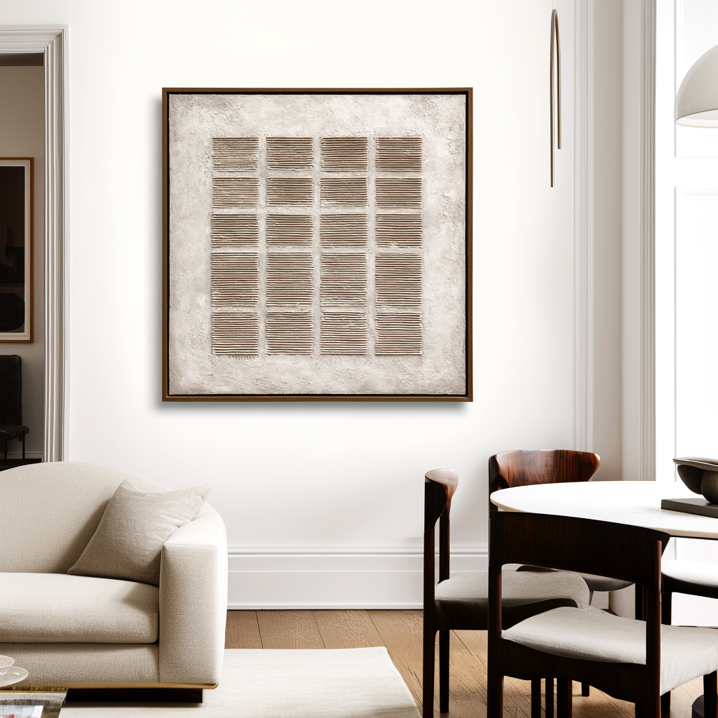 Silent Order celebrates the subtle beauty of structure and restraint. This Wabi Sabi Grid Relief Art is meticulously handcrafted with sixteen textured blocks, each echoing rhythm and precision while embracing organic imperfection. The tactile surface, in soothing neutral tones, creates an architectural sense of balance — ideal for minimalist, Japandi, and modern interiors that value quiet sophistication.