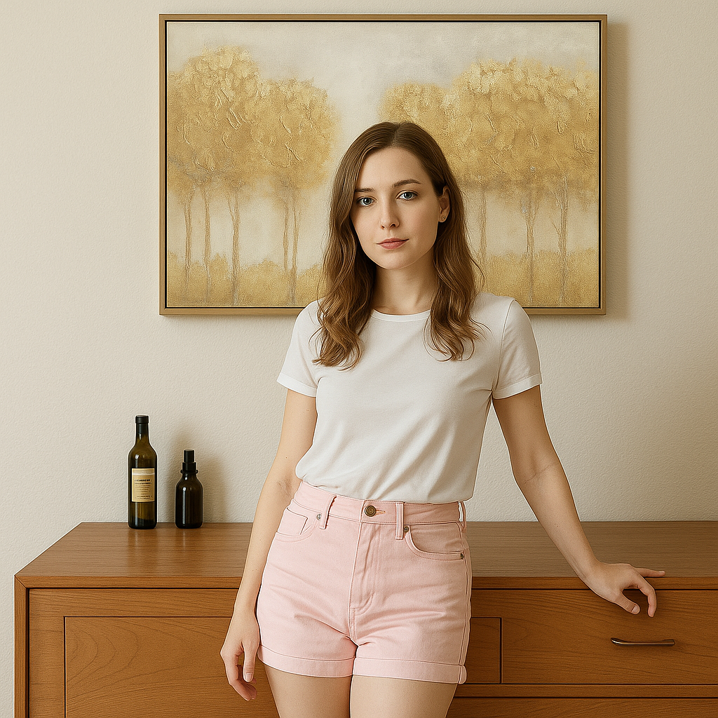 Eva Blue, born in 1990 love of abstract art, with its free brushstrokes, lines, and energy has inspired her to venture into the abstract, beginning with representational concepts. Ashley's compositions are imbued with bold contrasts. Her landscapes, still-lifes, and figurative pieces are created using acrylic on canvas.
