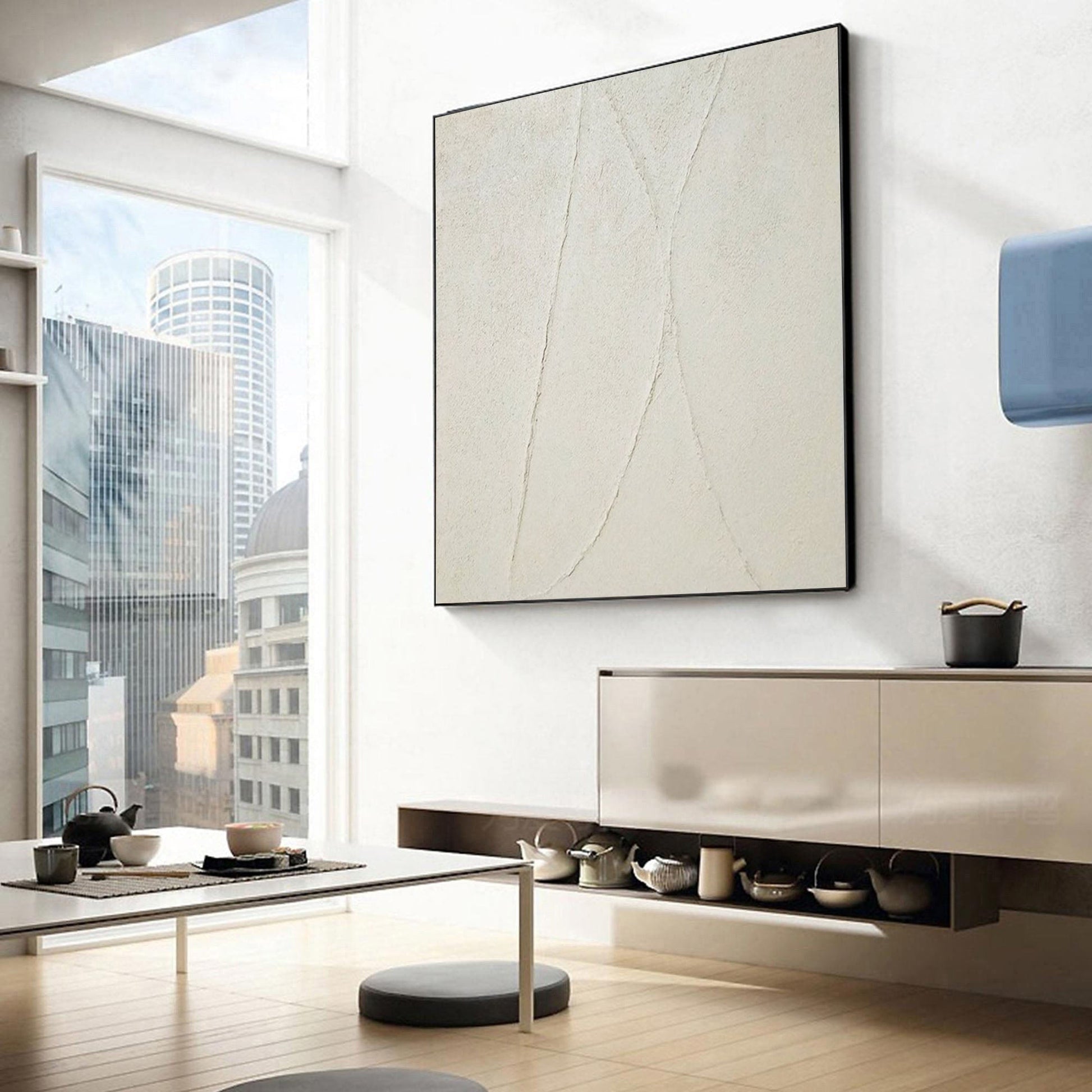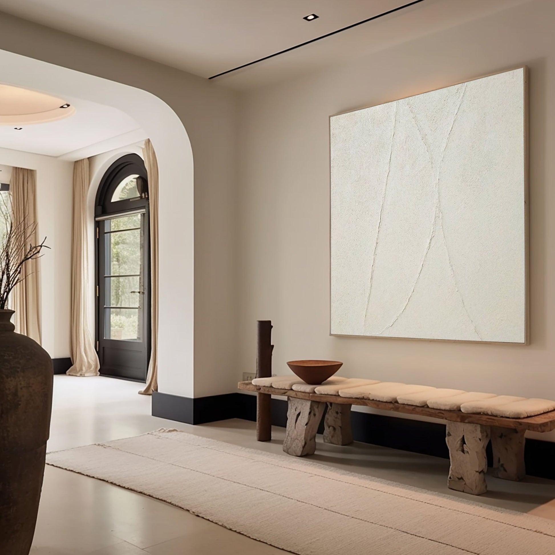 As a piece of Minimal White Abstract Art, it blends effortlessly into modern, wabi-sabi, and Scandinavian interiors. The faint organic lines also define it as Organic Line Texture Painting, bringing a natural, timeless elegance to the space.