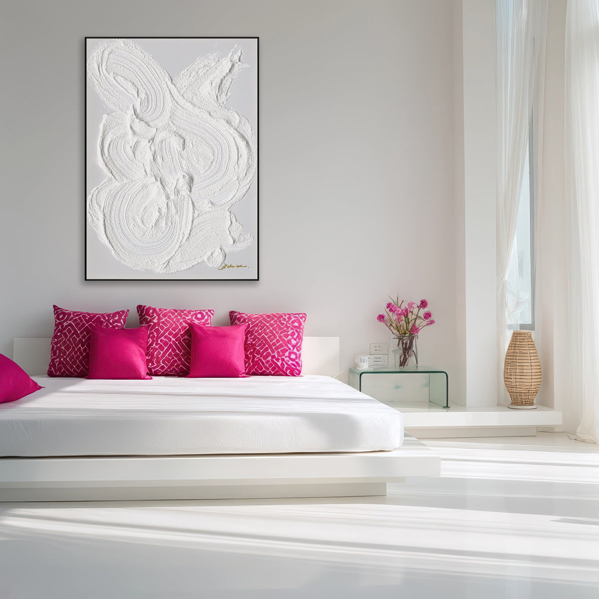 Bold white textured strokes highlight the beauty of minimalism, perfect for modern interiors.